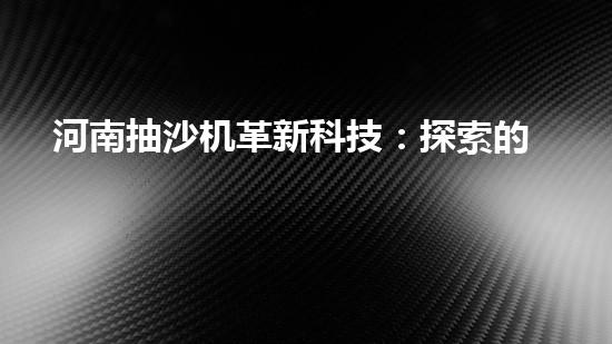 河南抽沙機革新科技:探索的未來?